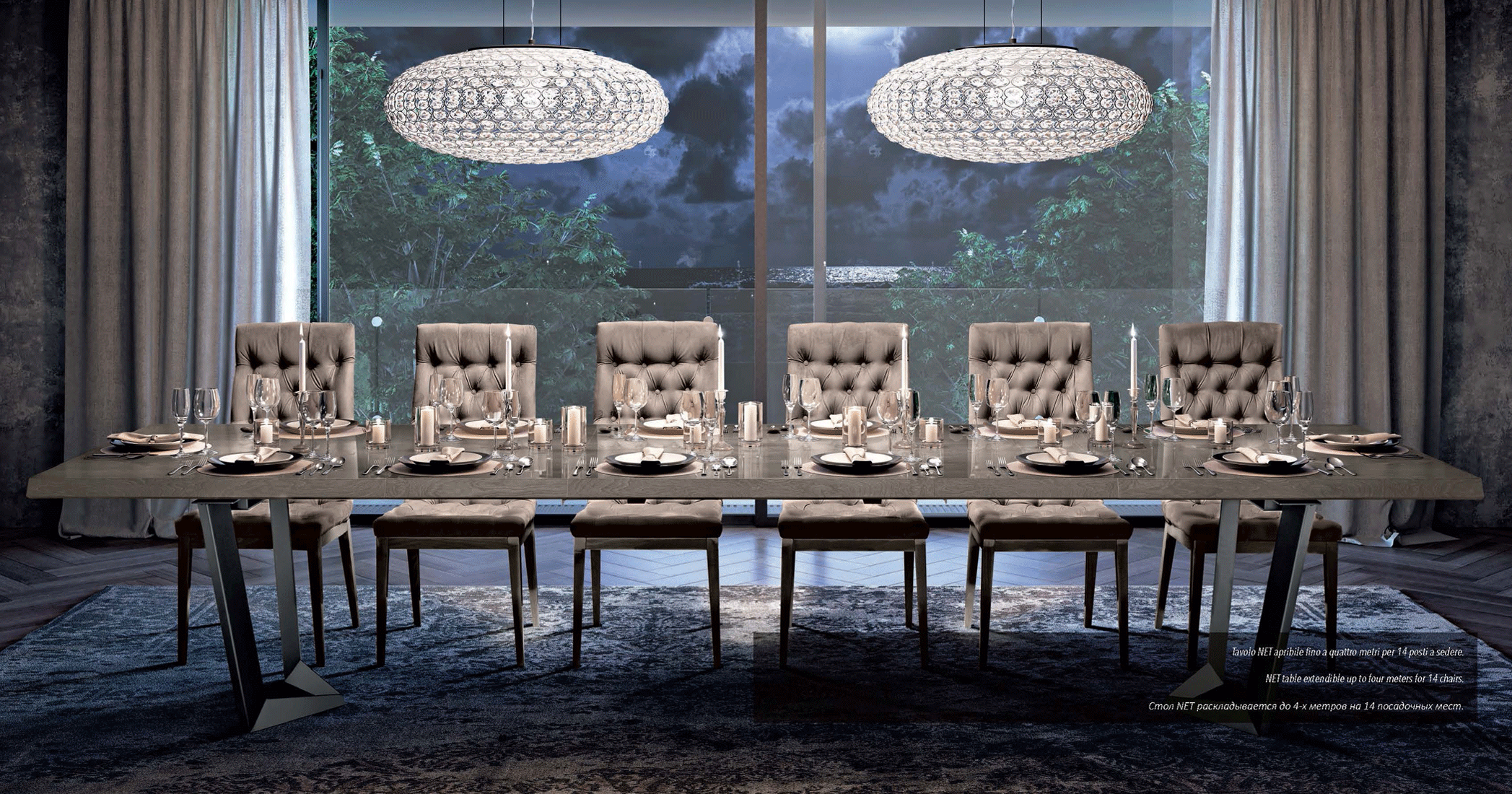 The table in stock includes 2 extensions. The mechanism can contain 4 extensions. The 2 extra should be ordered separately as special order ( using all 4 extensions, the table can open till 4 meters or 157.5 inches)